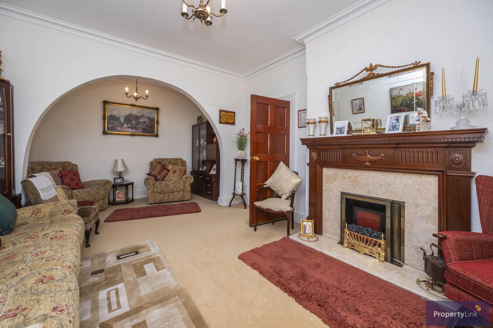 A spacious room for entertaining offering frontal aspect window views, carpet floor covering and feature mahogany fireplace with marble inset and open fire.