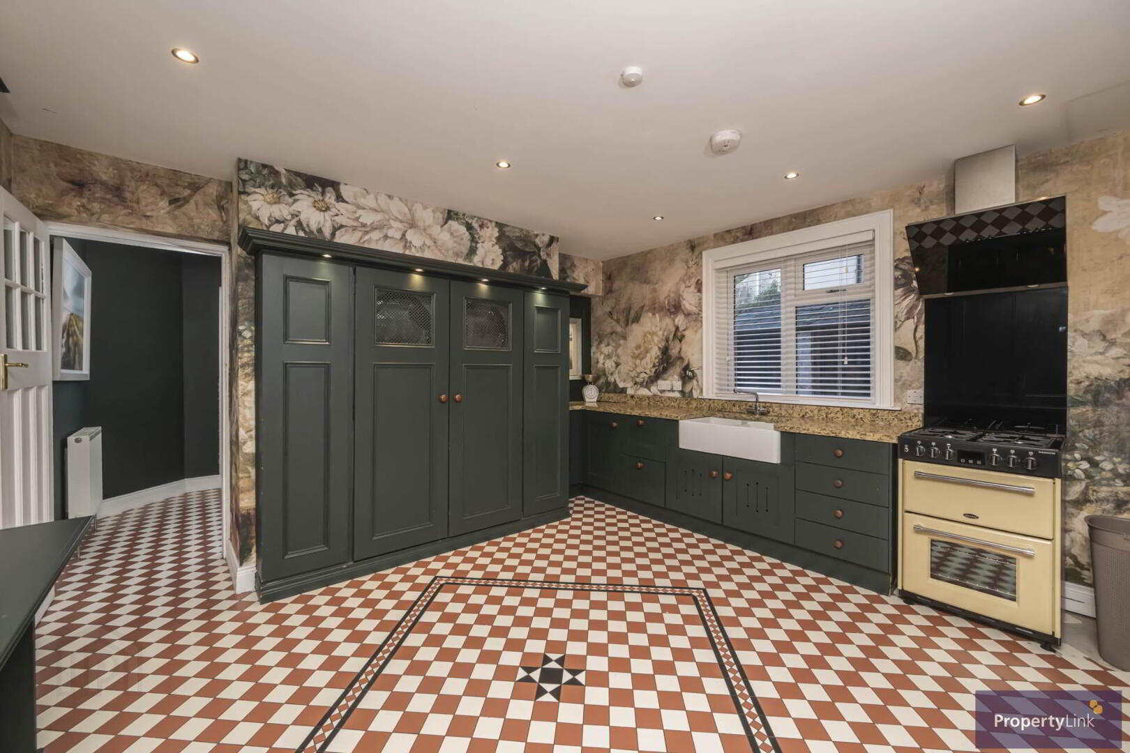 This beautifully appointed kitchen/dining space is a striking blend of classic elegance and contemporary craftsmanship. Offering rich bespoke hand painted fitted units to include belfast sink, intergrated dishwasher, fridge/freezer and pantry storage. The statement AGA range cooker provides a vocal point in the kitchen along with an impressive solid wood island with generous seating, ideal for both everyday living and entertaining. A charming bay window offering fitted shutters and seating area, perfect for extra dining space. This thoughtfully designed kitchen/dining area offers both practicality and character, making it a stand out feature of the home.