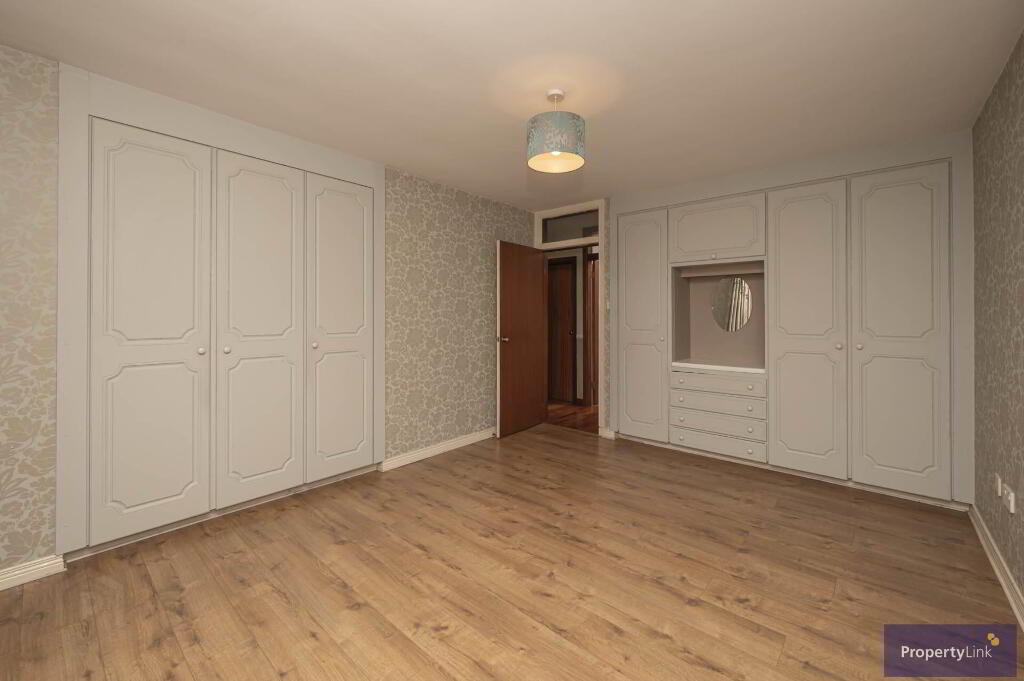 Generous double bedroom offering laminate wooden floor, built in wardrobes and frontal aspect window views.