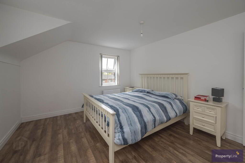 A second generous double bedroom with rear aspect window views and laminate wooden floor.