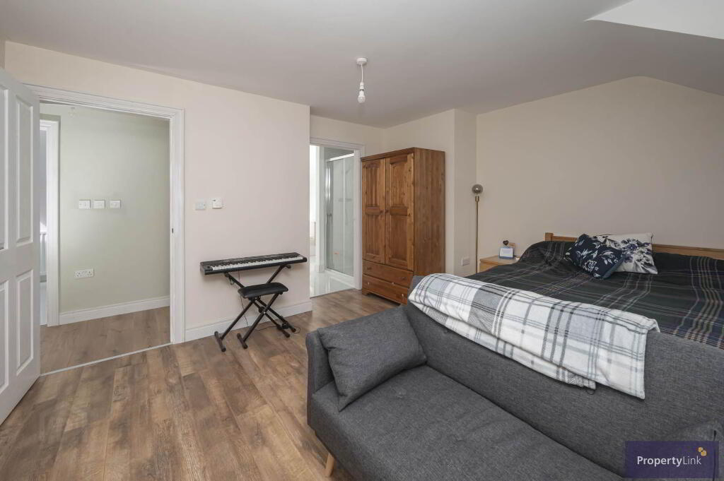 Offering laminate wooden floor, frontal aspect window views, ample space to house double bed and en suite to include electric shower, sink in vanity, low flush WC and ceramic tiled floor.