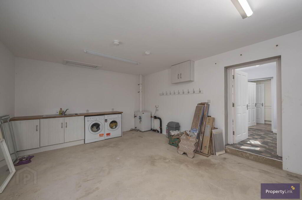 Spacious integral garage with electric roller door, and utility space offering stainless steel sink and drainer and plumbed for auto-washers.