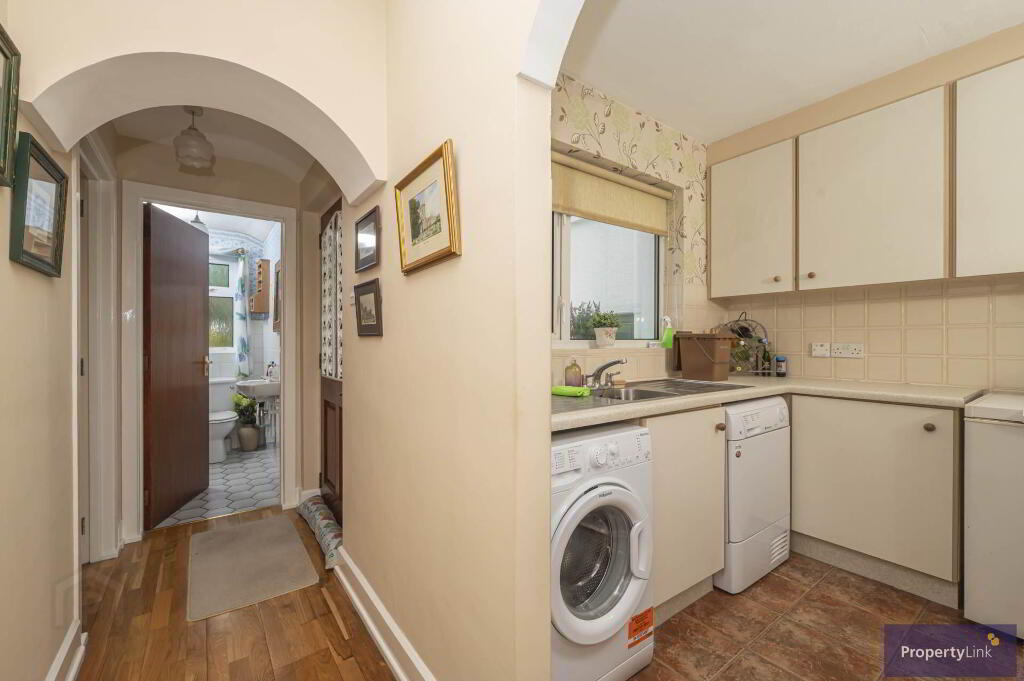 Composing of fitted units, space to house auto-washers, ceramic tiled floor and rear aspect window views.