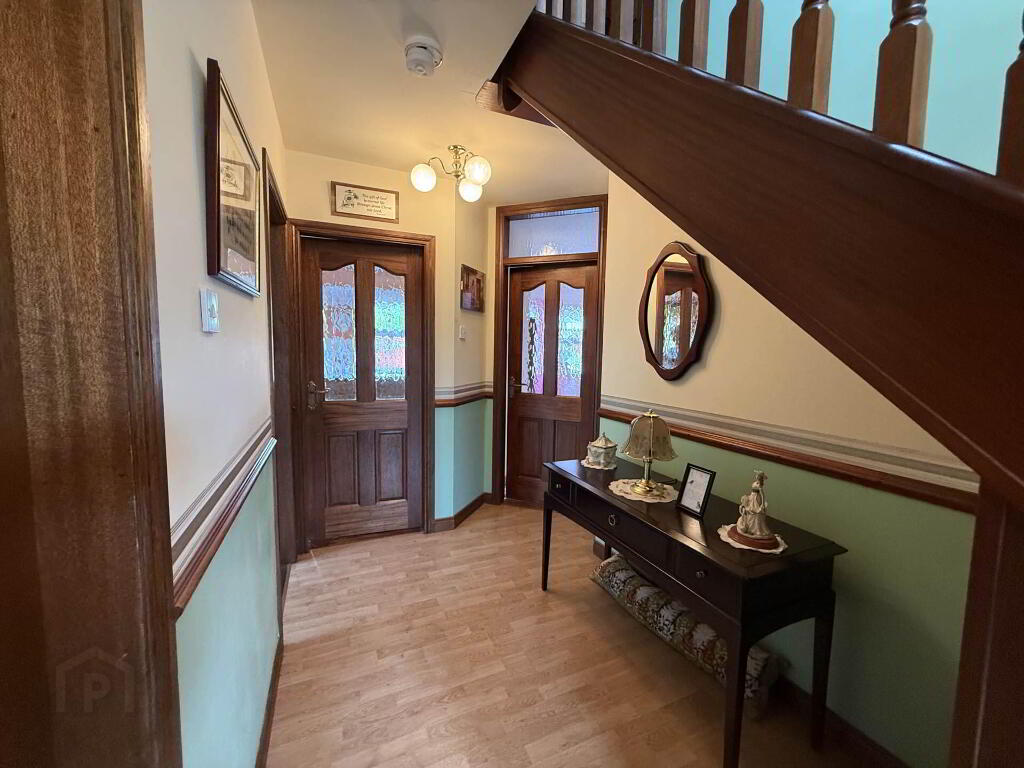 Entrance Hall Entered via a PVC door to hall way with laminate wooden floor and carpet stair covering.