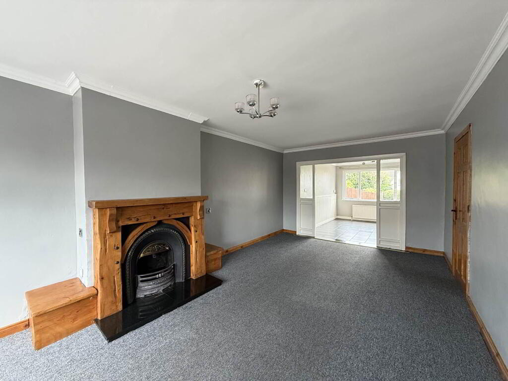 Living Room - 21'3" (6.48m) x 11'3" (3.43m) A spacious frontal aspect room offering carpet floor covering and feature fireplace with open fire. Open plan to kitchen/dining area.