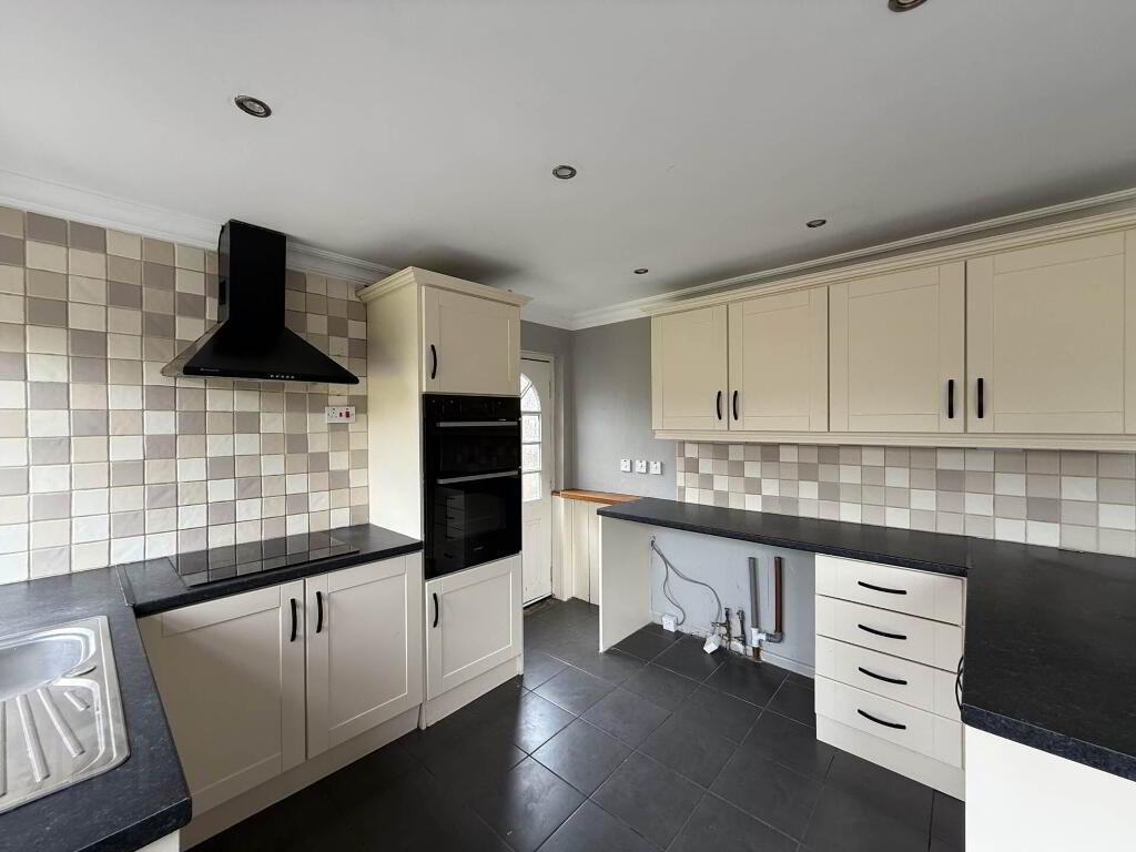 Kitchen - 18'3" (5.56m) x 10'8" (3.25m) Composing of high and low level units to include electric hob with extractor fan over, stainless steel sink and drainer, high level double ovens, space to house autowashers, ceramic tiled floor, ample space to house dining table and access to the rear garden.