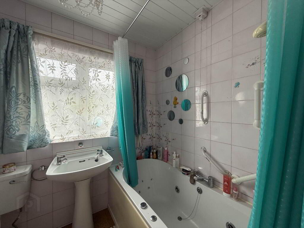 Three piece suite to include pedestal wash hand basin, low flush WC, panel bath and ceramic tiled walls.