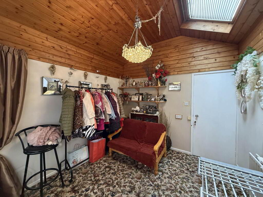 A spacious rear aspect room offering carpet floor covering leading to utility area.