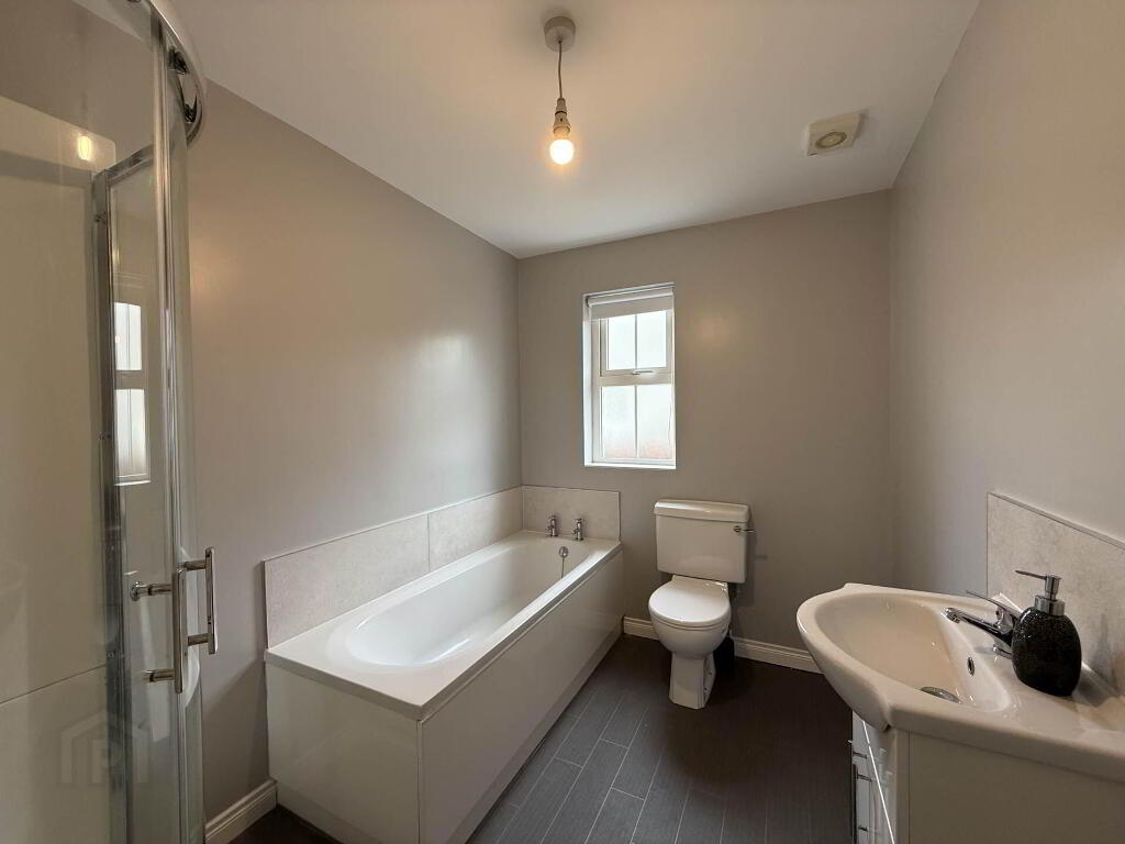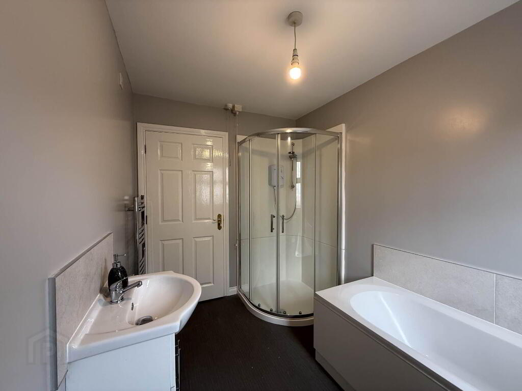 Bathroom - 9'7" (2.92m) x 6'7" (2.01m) Four piece suite to include sink in vanity, low flush WC, panel bath and shower pod. Lino floor covering.