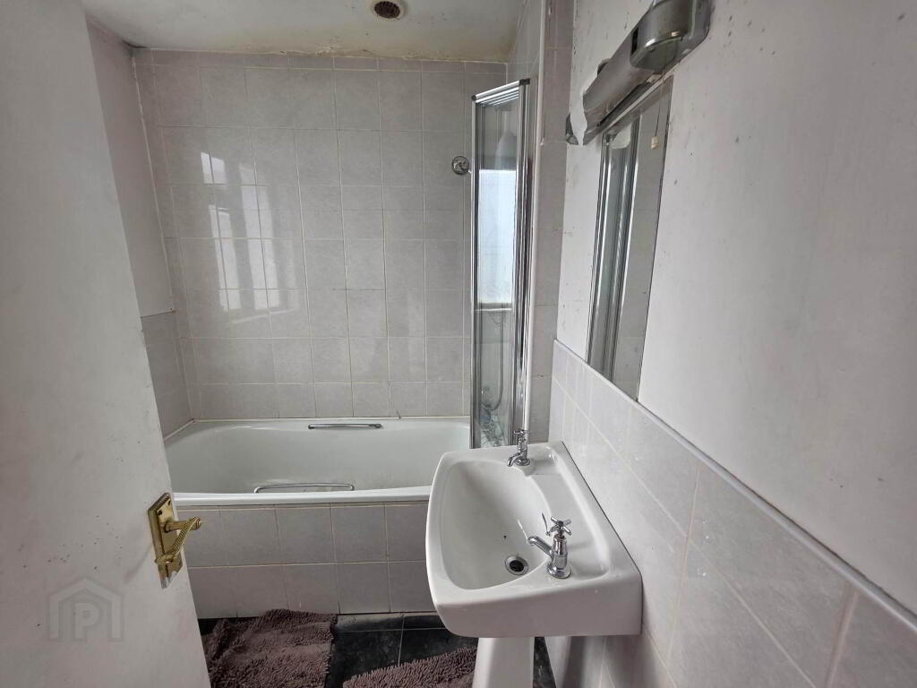 Bathroom - 6'7" (2.01m) x 6'7" (2.01m) Bath with electric shower and screen over, pedestal wash hand basin, low flush wc and pedestal wash hand basin. Part tiled walls .