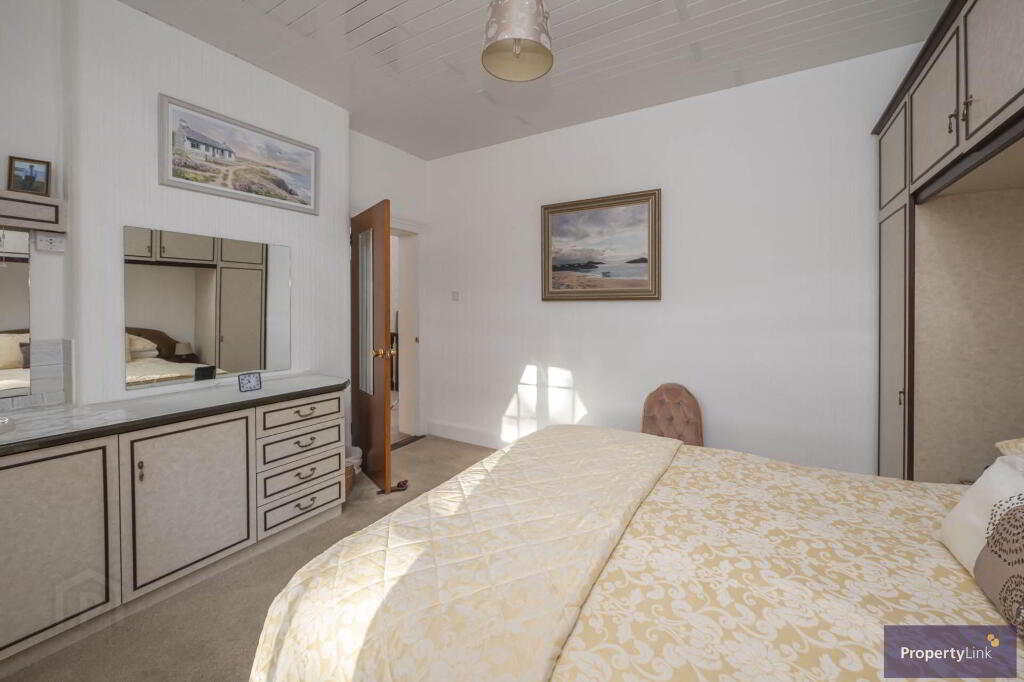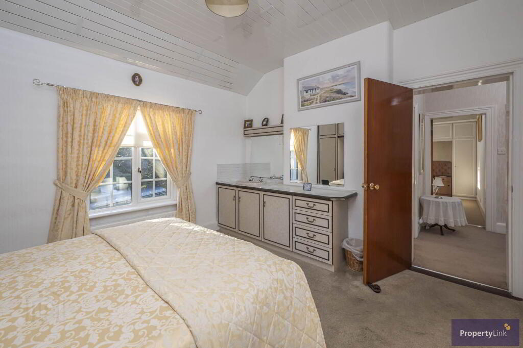 A second generous double bedroom offering frontal aspect window views, carpet floor covering, fitted wardrobes and sink in vanity.