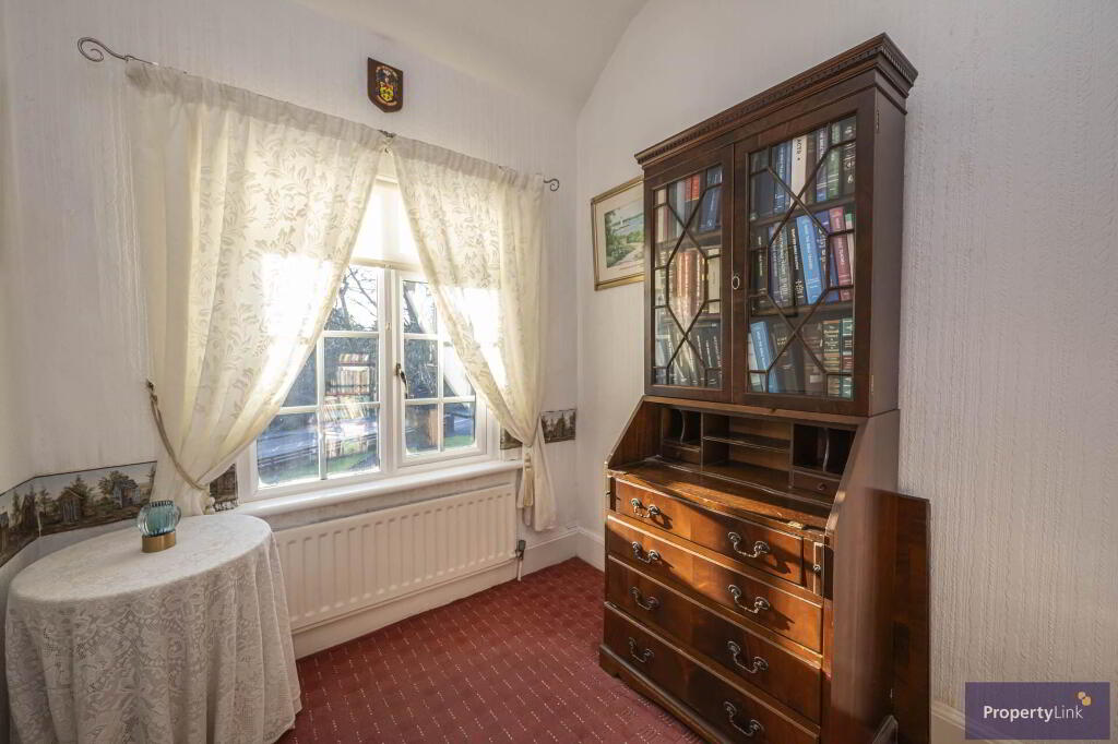 Currently used as a office, frontal aspect window views and carpet floor covering.