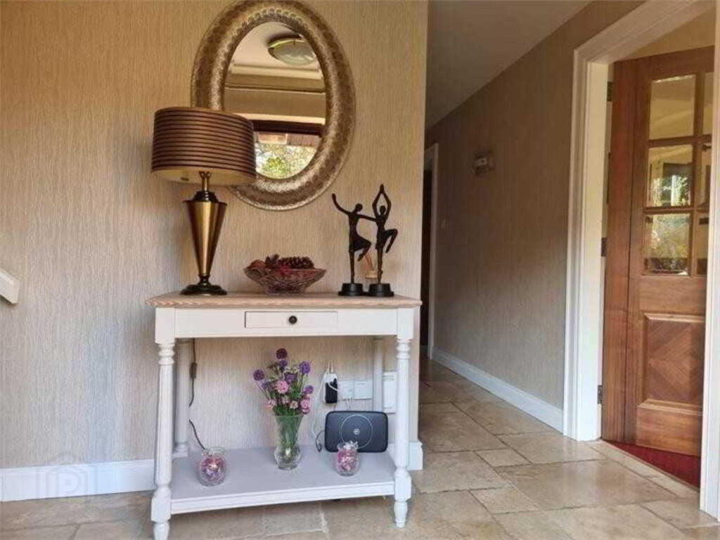 Accommodation Entrance Hall PVC front door with matching leaded glass side panels, tiled floor, walk in cloak room off which offers good storage. Smaller storage cupboard off hall, tiled floor. Lounge 10` 8" x 16` 9" (3.25m x 5.11m) White marble fireplace with matching hearth and electric inset. There is an open fire which can be lit. Kitchen 12` 3" x 10` 2" (3.73m x 3.10m) White fitted high and low level units with white quartz worktop, and matching kitchen table with quartz top, stainless steel sink unit, electric cooker with extractor fan over, fridge freezer, plumbing for dash washer, display cabinet, concealed lighting, part tiled walls and tiled floor, PVC rear door. Direct access to hall. Dining Room 9` 7" x 8` 4" (2.92m x 2.54m) Laminated wooden floor, glass panel door to hall. Family Room 10` 8" x 12` 3" (3.25m x 3.73m) Tiled floor, sliding patio doors which lead out the rear garden and patio. Bedroom 1 11` 2" x 8` 7" (3.40m x 2.62m) Fitted slide robes, laminated wooden floor. Bathroom 9` 5" x 7` 7" (2.87m x 2.31m) White bathroom suite, panel bath, low flush WC, sink in vanity unit with electric mirror over, shower cubical with power shower, PVC celling with spot lights, tiled floor and fully tiled walls, chrome towel radiator. Bedroom 2 15` 5" x 10` 5" (4.70m x 3.18m) Built in wardrobe, range of fitted furniture offering wardrobe space, fitted chest of drawers and computer desk and matching cupboards. Bedroom 3 15` 6" x 12` 9" (4.72m x 3.89m) Built in furniture offering desk space with matching drawers, built in wardrobes and cupboard space, laminated wooden floor. Shower Room 12` 3" x 6` 2" (3.73m x 1.88m) Pod shower with electric shower, sink in vanity unit with electric mirror over, Low flush WC, PVC Panelling on walls, concealed lighting, Velux window. Landing Located off the landing you have a small study or could be used for general storage. Walk in hot press which has shelving and storage. Garage 9` 6" x 21` 5" (2.90m x 6.53m) Plumbed for washing machine and space for tumble dryer, up and over garage door, attic space which is floored, mahogany side door. Gardens The garden to the rear is very private as it overlooks rural views and the garden has been tastefully landscaped to offer mature gardens in shrubs, flower and trees with a fish pond. There is paved patio with matching paving surrounding the property. To the side is a tarmac drive with ample parking and landscaped gardens to front.