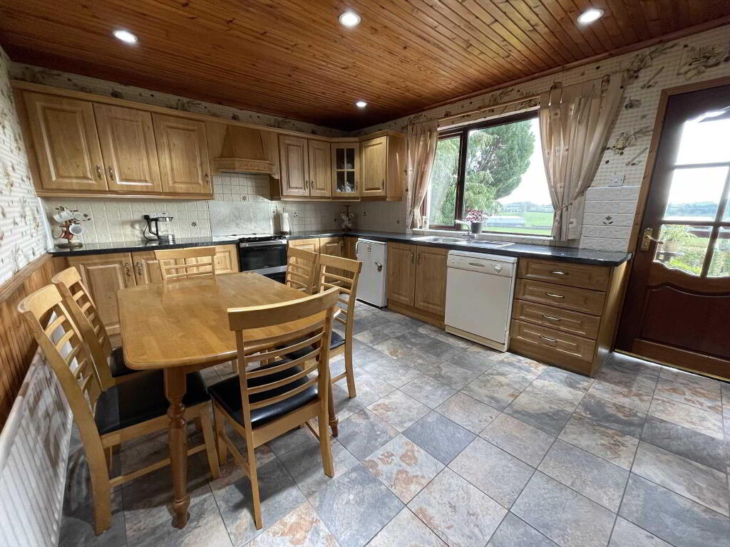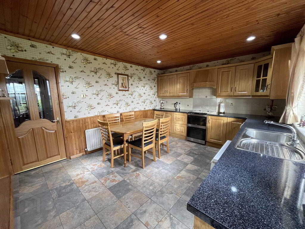 Kitchen - 16'2" (4.93m) x 11'4" (3.45m) Spacious kitchen to include high and low level fitted units, stainless steel sink and drainer unit, space for cooker with extractor fan over, space for fridge and plumbed for dishwasher, tiled floor and part tiled walls leading to glass porch at rear.