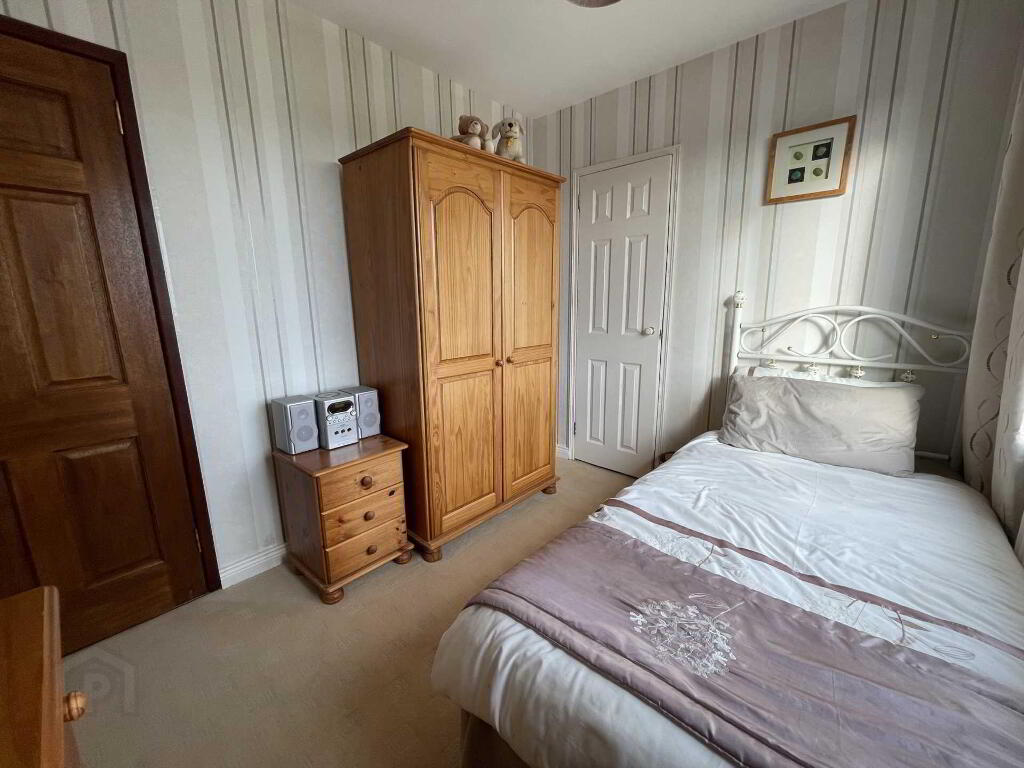 Bedroom 3 - 9'9" (2.97m) x 7'9" (2.36m) Single bedroom with rear window views, carpet floor covering and hot press storage.