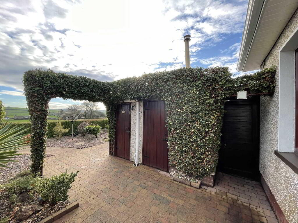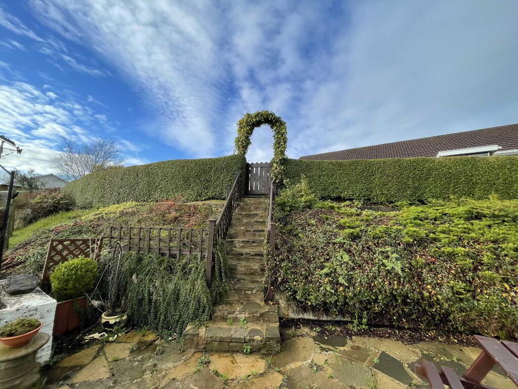 Garden Mature gardens in lawn to the front, side and rear composing of mature shrub beds. Paved patio area to the rear with pebble stoned beds.