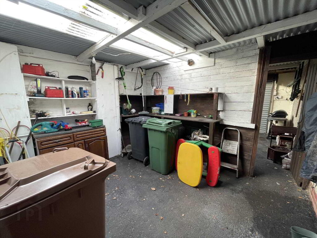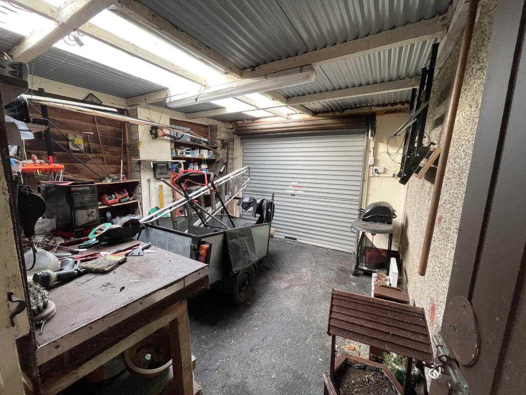 Garage Spacious garage area with electric roller shutter door, power and rear access door.