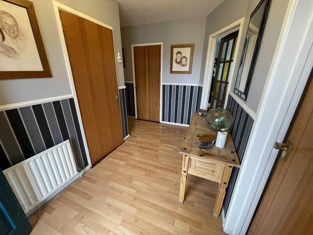 Entrance Hall Entered via a wooden front door with glass side panels to spacious hallway, with laminate wooden floor and cloakroom storage.