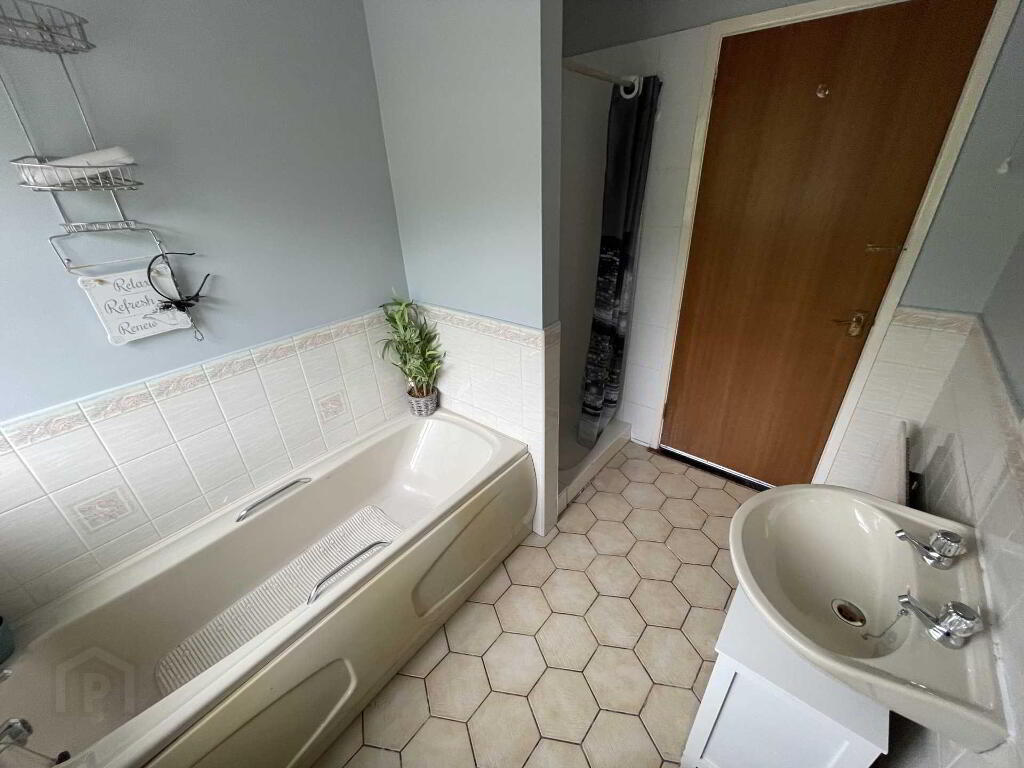 Bathroom - 8'6" (2.59m) x 6'4" (1.93m) Four piece bathroom suite to include pedestal wash hand basin, low flush WC, panel bath, shower enclosure, ceramic tiled floor and part tiled walls.