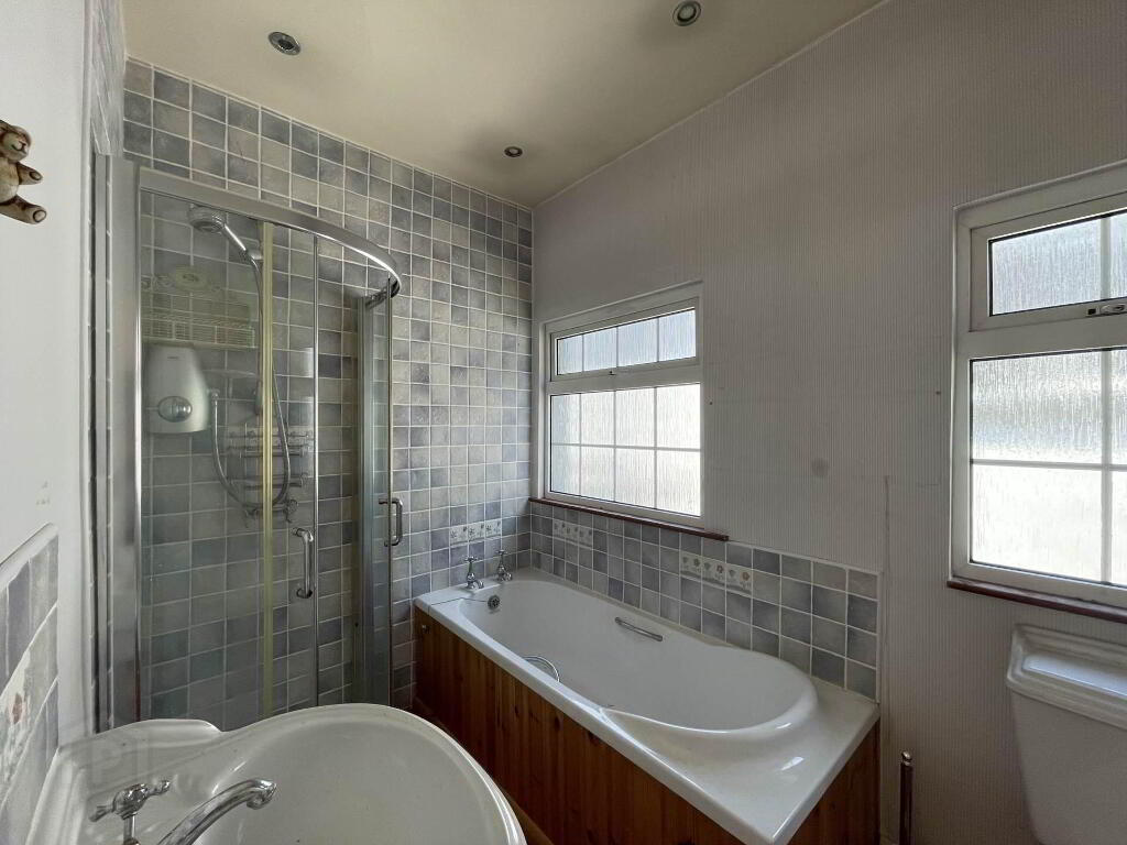Bathroom - 8'4" (2.54m) x 5'3" (1.6m) Offering four piece suite to include electric shower, panel bath, pedestal wash hand basin and low flush WC.
