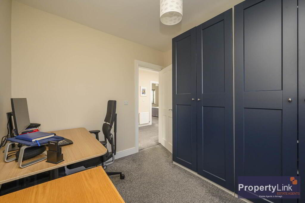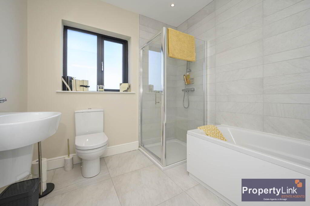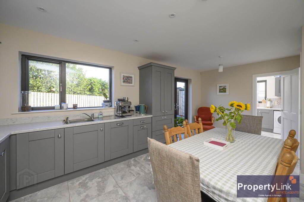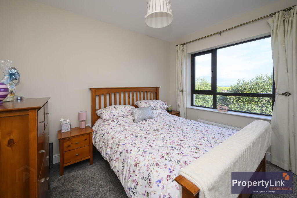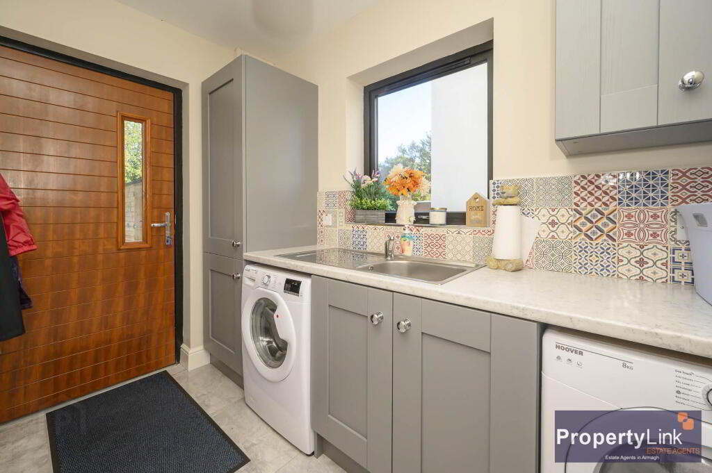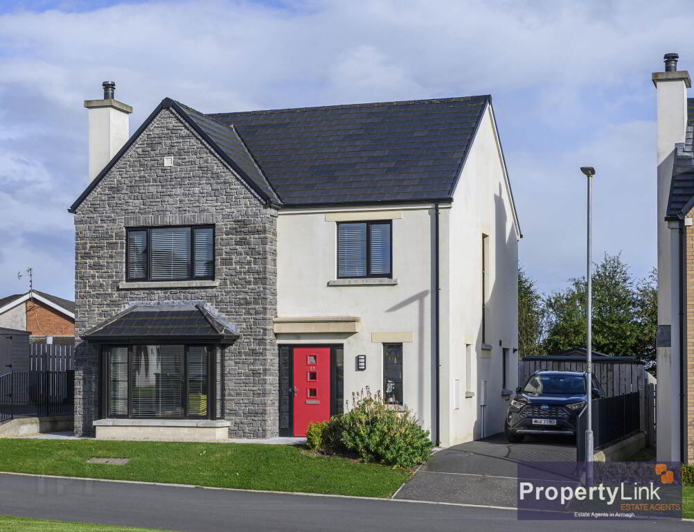 Resting in a quite development just of the Portadown road on the outskirts of Armagh City centre is this fabulous detached family home.This property is a credit to its current owners and has quality fixture and fittings throughout. The ground floor offers a spacious sitting room , toilet, walk-in cloakroom, beautiful kicthen/dining space and utility room off. The staircase leads you to the 1st floor boasting four bedrooms master with en-suite facilities and family bathroom. Externally the property is situated on the most desirable site and offers a private rear garden and patio area enclosed with panel fencing and gate access to the front driveway which is lead in tarmac offering private parking. Please contact us to arrange your private viewing.