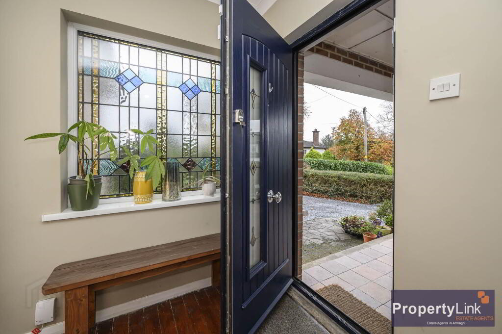 Entrance Hall An inviting entrance hallway through a newly fitted composite front door. A feature stained glass window is the focal point to the beautiful entrance hallway.